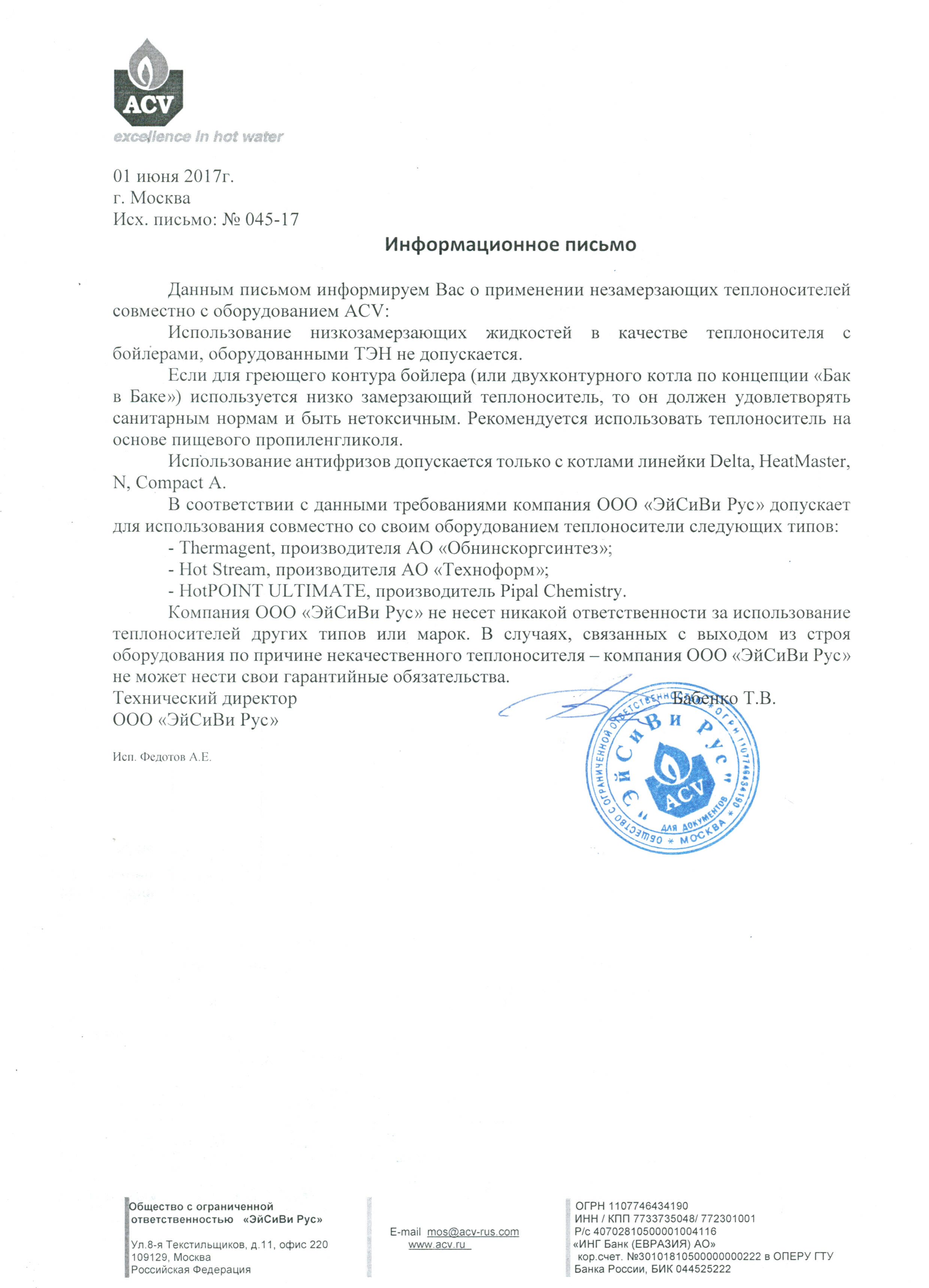 Общие документы ACV